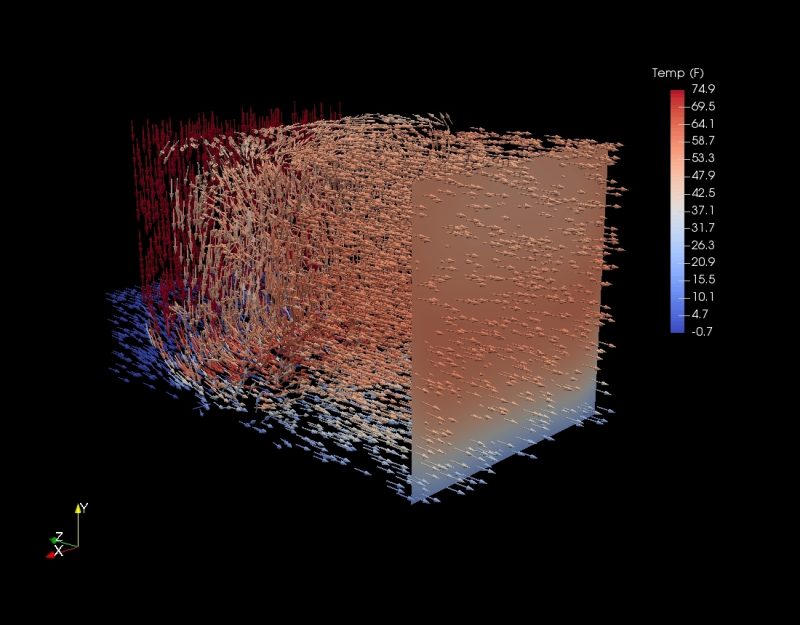 Cross-section image of KEES CFD analysis shows impact of air mixer inserted in an air handling unit.