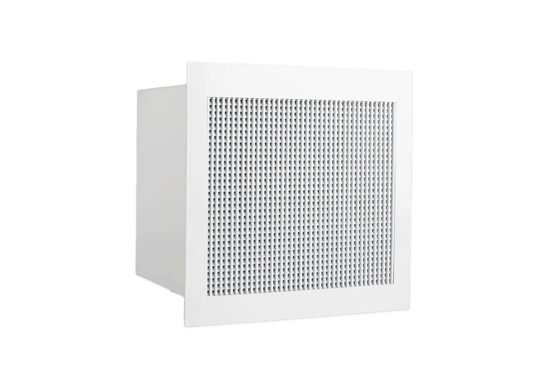 Also accepted for medium-risk areas is the perforated 10-gauge steel linear slot diffuser (SEG-9LS3VH). The perforated face has 3/16-inch diameter holes on 9/32-inch staggered centers. An industry exclusive, this risk-resistant linear diffuser is capable of throwing air in multiple directions while meeting security and risk-resistant requirements. It offers the same performance and fits in the same space as a regular linear slot diffuser but is fully welded and features a small ligature-resistant perforated hole pattern. A supply plenum can be included to help the installer transition from the diffuser to the ductwork. The diffuser has a durable two-part polyurethane finish in white and like all KEES products, is available in custom colors.